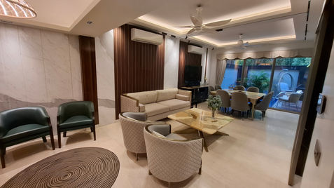 For this expansive residence at Tata Primanti, our vision was to balance grandeur with comfort. We reimagined the layout to highlight the double-height ceilings while creating a home that feels warm and inviting. This project stands as a testament to our ability to deliver luxury home interiors in Gurgaon, blending modern design with a timeless appeal.